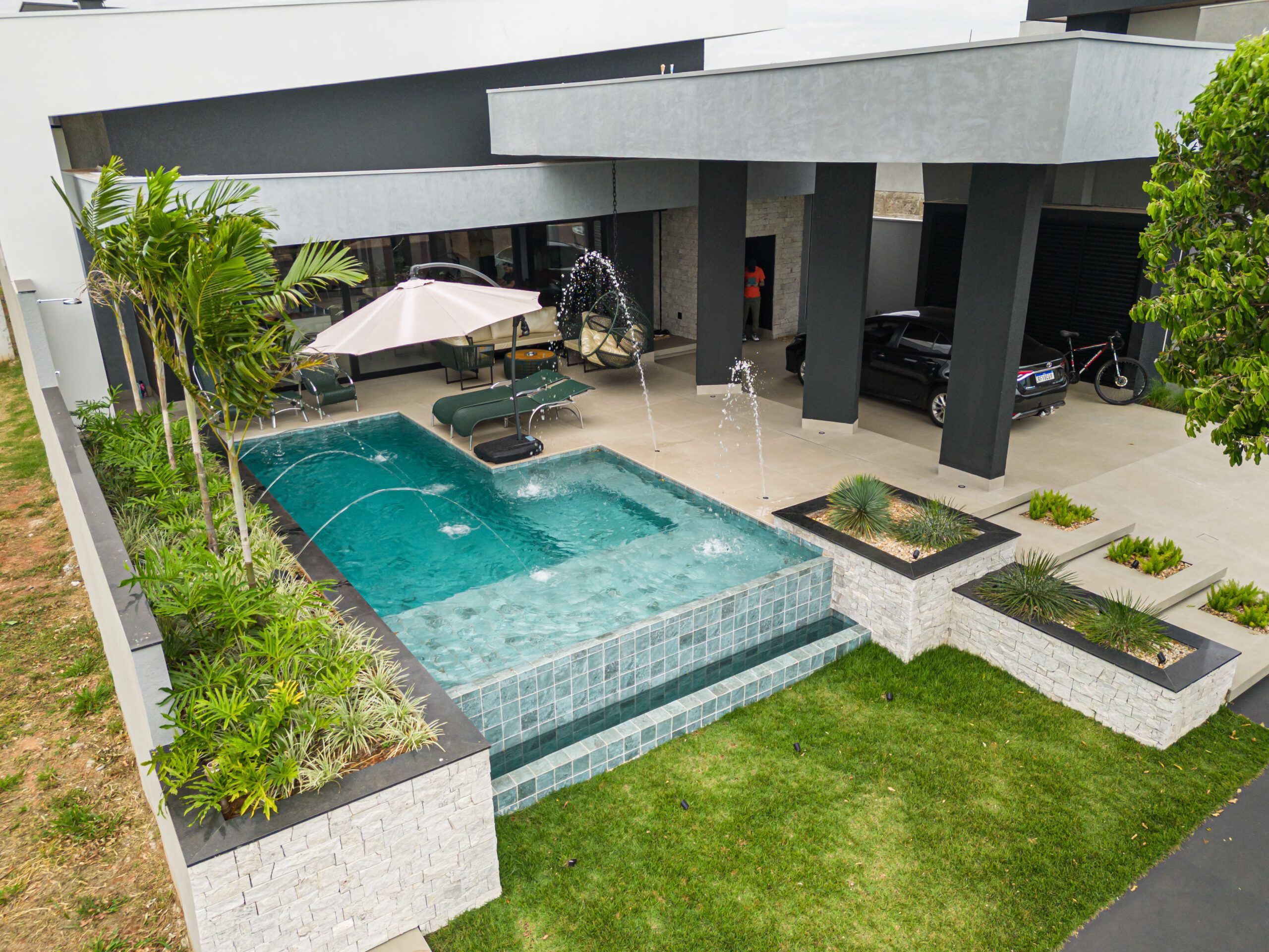 Cada detalhe desta fachada foi desenhado com cuidado e atenção aos mínimos detalhes, resultando em um visual que é ao mesmo tempo impressionante e acolhedor. É um projeto que realmente define o significado de viver com estilo e conforto.